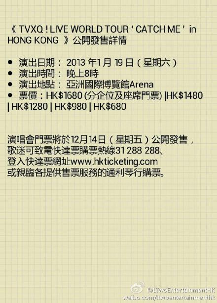 2013.1.19 TVXQ!LIVE WORLD TOUR "Catch Me" in HONGKONG "20日はスケジュールの都合により1回公演になったようです