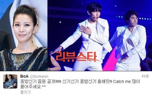 BoA、東方神起応援から "不思議不思議東方神起繁盛っ!"歌手BoAが東方神起を応援した。24日、BoAはツイッターを通じて"東方神起音源公開!!不思議不思議東方神起繁盛っ!Catch meたくさん聴いてください^ ^ "のメッセージを残した。