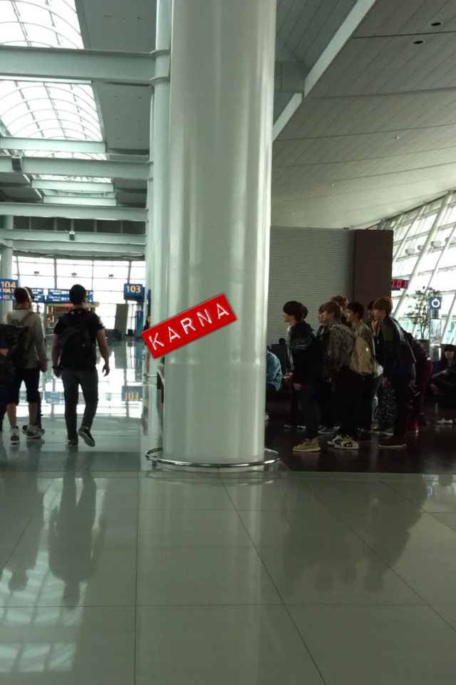 空港の出国時にユンホ先輩に挨拶するEXOソース:KARNA様
