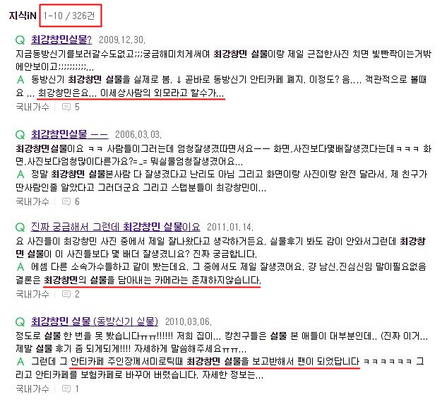 2000年代中後半、ポータルサイトQ&Aセクションには該当質問が果てもなく掲載され始めました。 実物を直接見たこれらの後期文が載ってきて画面にみな入れられないチェガン・チャンミンの'彫刻像'実物がうわさが立ち始めたことでしょう。 今でも検索してみれば何と300個を越える'実物'質問を見ることができます。