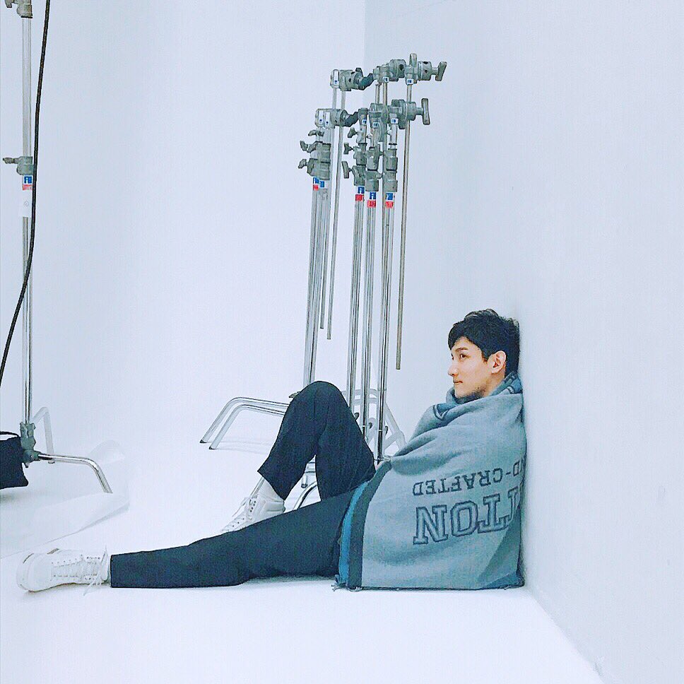 写真はブランケット包まれカット撮影中のチャンミンさん。彼のおすすめデートムービー『ワンデイ』もぜひ。人生観がすごく伝わってきます。