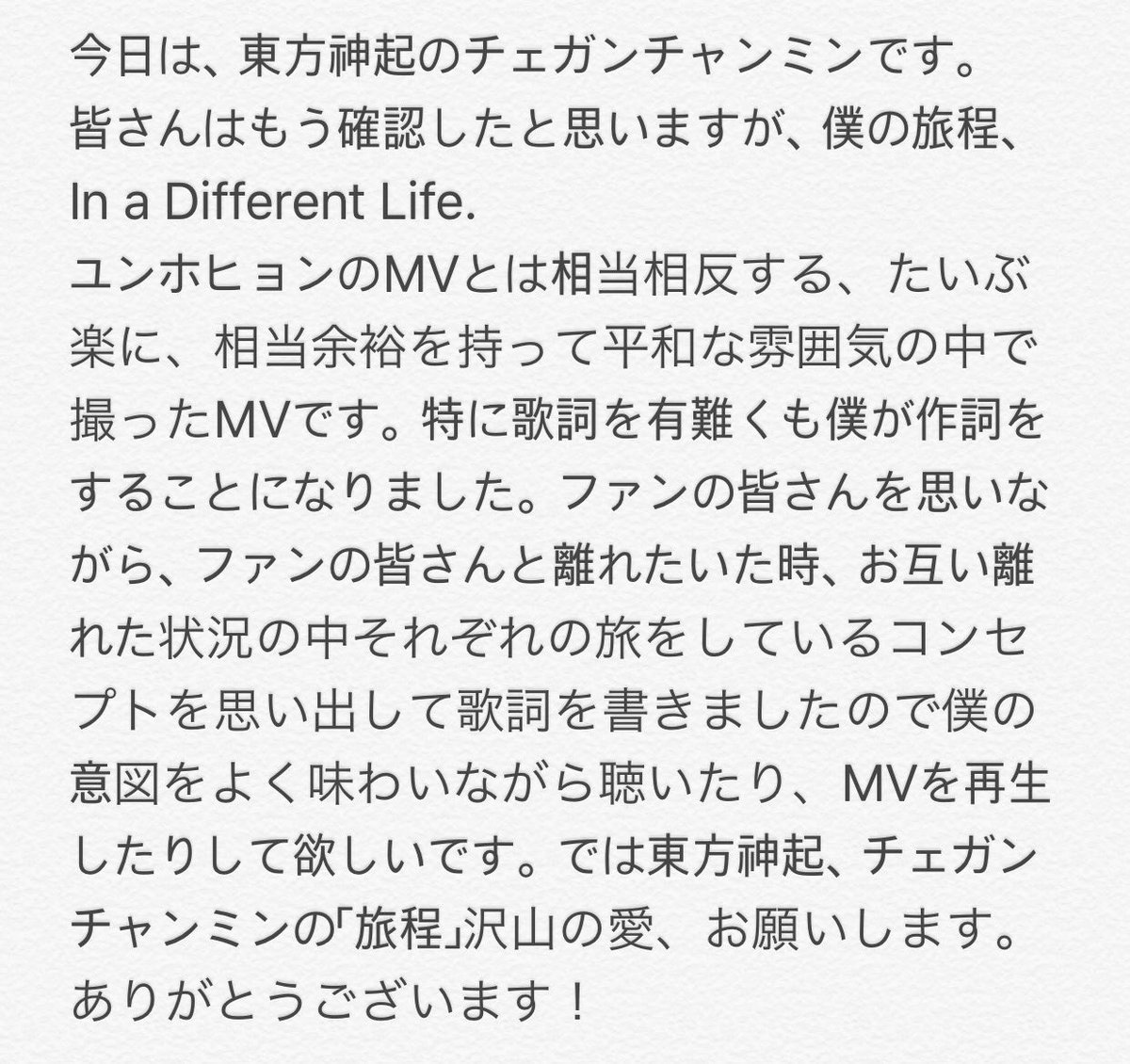 チャンミンのカシオペアに宛てた手紙を訳してくれました有難う~