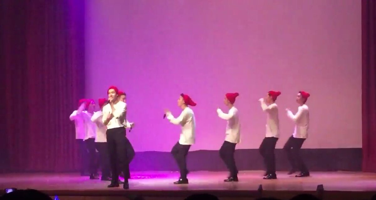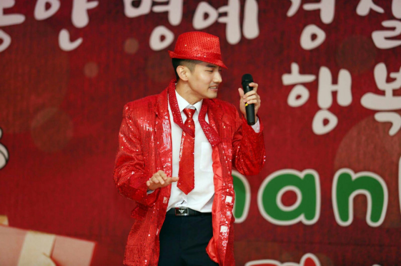 真っ赤なキラキラ衣装で会場を歩き回ってファンサービス