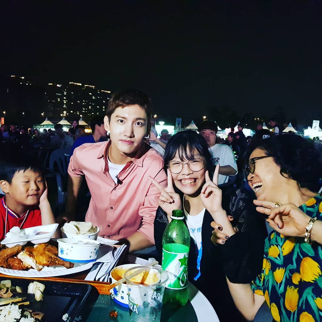 一般のお客様と写真を撮るチャンミン