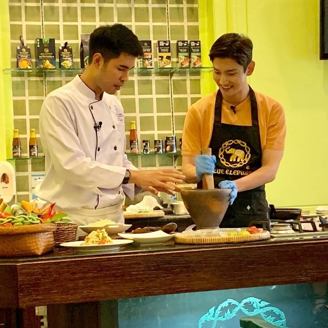 วันนี้ #changmin มาเรียนทำอาหารไทยครับ มีทั้งหมด 2 เมนู คือ ปูผัดผงกะหรี่ , ส้มตำปลาร้า #tvxq #bdsk #cookingclass #chef #thaicuisine