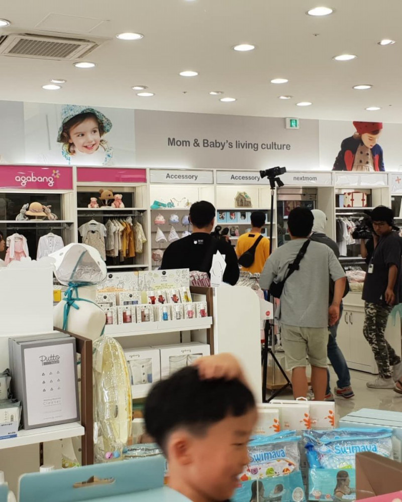 子供服の売り場でジヘちゃんのベビーの服を選んでいる