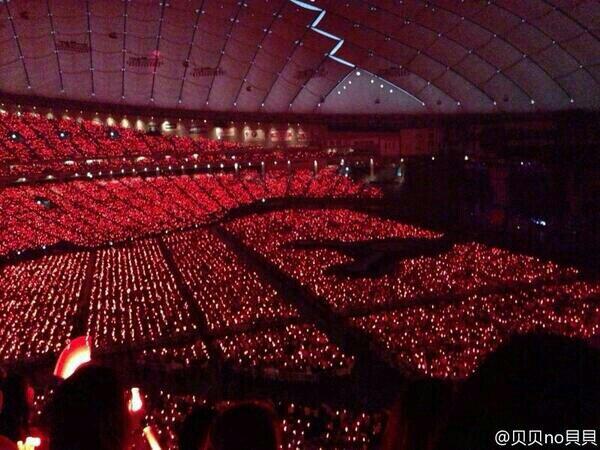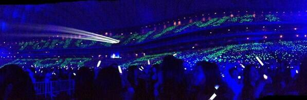 白いペンライトの海に浮かぶみどり色の「TOHOSHINKI FOREVER」の文字!