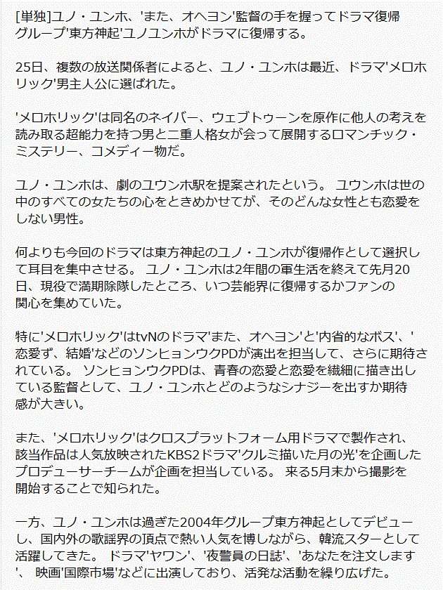 ユノ・ユンホ、'また、オヘヨン'監督の手を握ってドラマ復帰