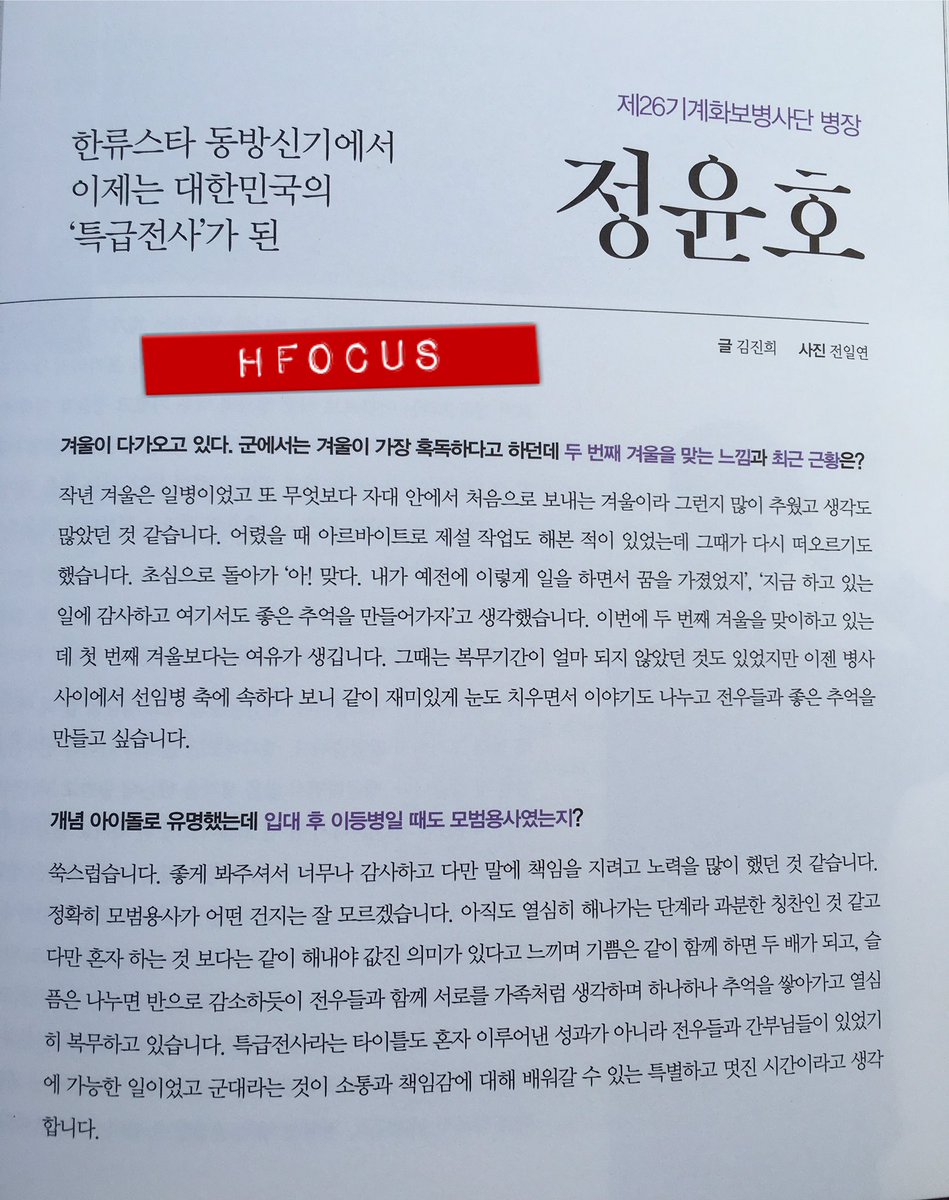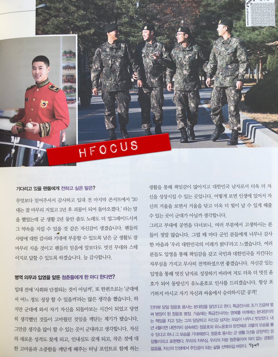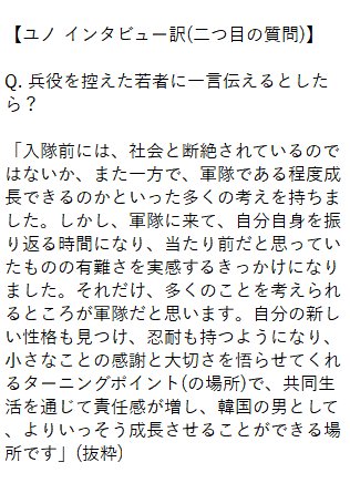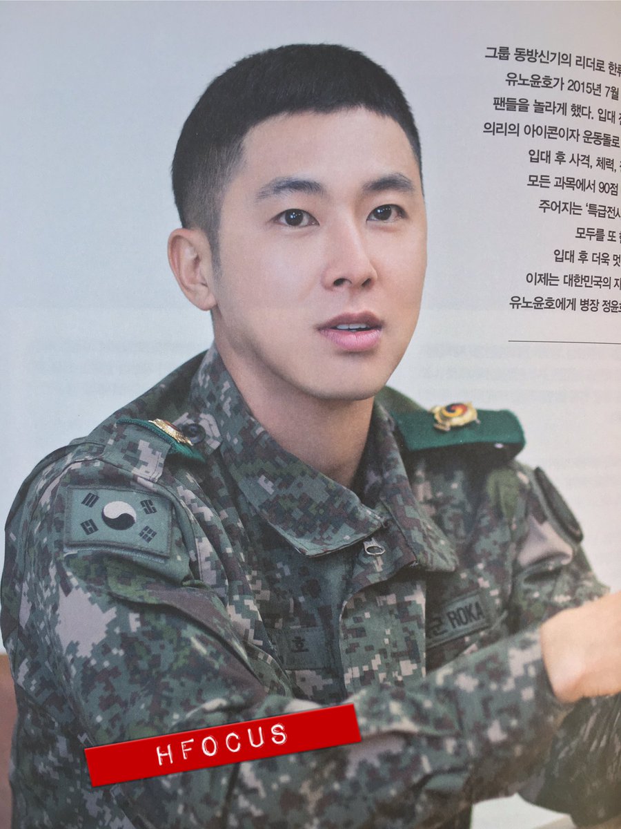 ユノ「分隊長」になって肩に「緑色」の肩章を付けています
