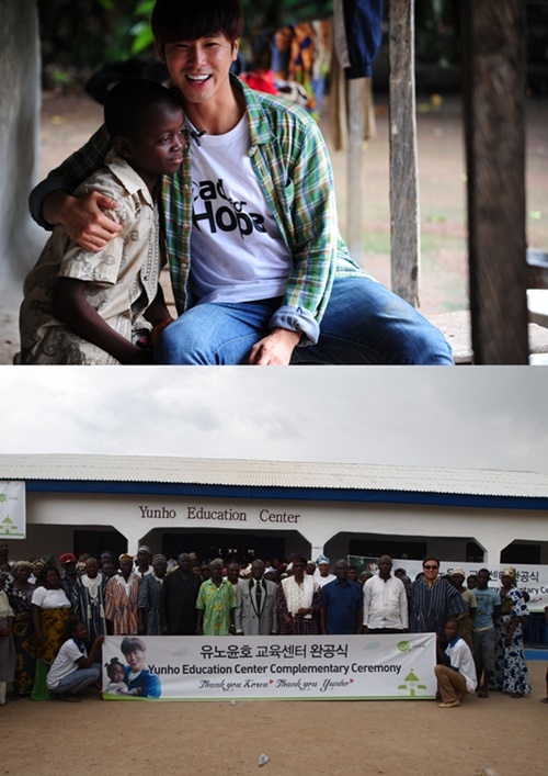 昨年2月、ユンホとファンクラブが送った基金でアフリカガーナのボルガタンガ地域にユンホ教育センター(U Know Yunho Centerが建設され、今年2月にはユンホの誕生日を迎えて児童に特別給食を支援した。ユンホのファンは、彼のデビュー記念日、誕生日、ドラマ出演日に合わせて飢餓対策に基金や米、文具類を送り続けている。ユンホは2014年に出演したMBCドラマ『夜警日誌』の制作発表会場に送った32トンの米のうち、24トンを飢餓対策を通じて独居老人や障害者施設などに寄付したことがある。ファンカフェ『チョン・ユンホのファンズ』の会長は「恵まれない児童問題に関心があるユンホと一緒にこれからも寄付活動を続ける」とコメントした。