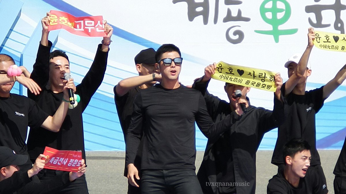 満を持してユンホが出てくると、大勢のファンが席を離れて前に出てきてしまい、「前に出ないでくださいね」とユンホが直接お願いする場面もあった。