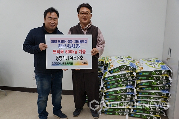 1月25日東方神起、ユノ・ユンホさんがお米500kgを地域障害者と障害者団体(京畿道(キョンギド)視覚障害者連合会烏山市(オサンシ)支会、京畿道(キョンギド)障害者福祉会烏山市(オサンシ)支部)に分けて寄附した。