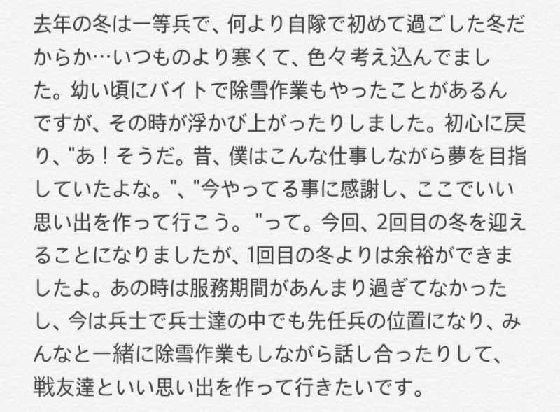 軍隊で2回目の冬を迎えた気分と最近の近状は?