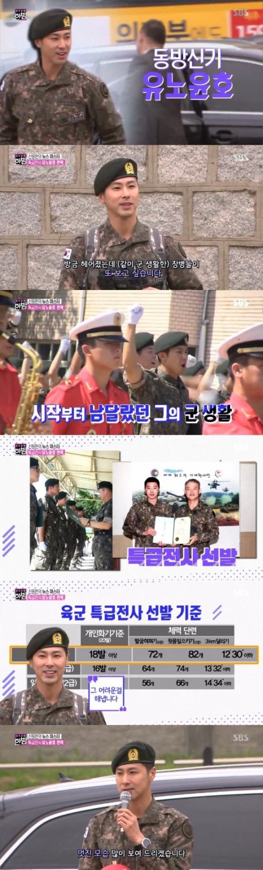 軍生活を熱心にした分かったユノ・ユンホは“たった今別れたが(一緒に軍生活した)将兵がまた会いたいです”として友情を表わすこともした。 ユノ・ユンホは陸軍特級戦士に選抜されるなど格別な軍生活の足跡を残して目を引いた。