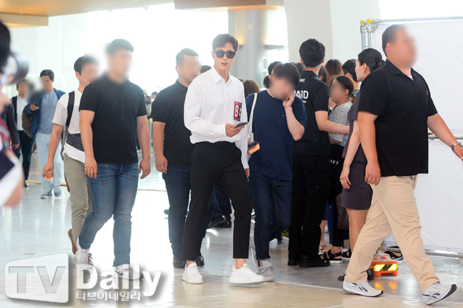 東方神起、ユノ・ユンホがSMエンターテインメントグループ ワークショップ参加のために19日午後済州島(チェジュド)行き飛行機搭乗口へ向かっている。