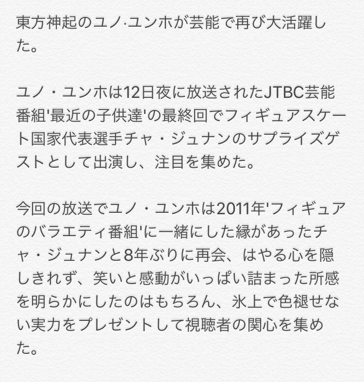 ・最後のコメントで、ユノはやっぱり特別な1日になったってコメントしてたけど、ジュナンくんもユノヒョンに会えたし、MCの方達とスケートも出来て特別な1日でしたって