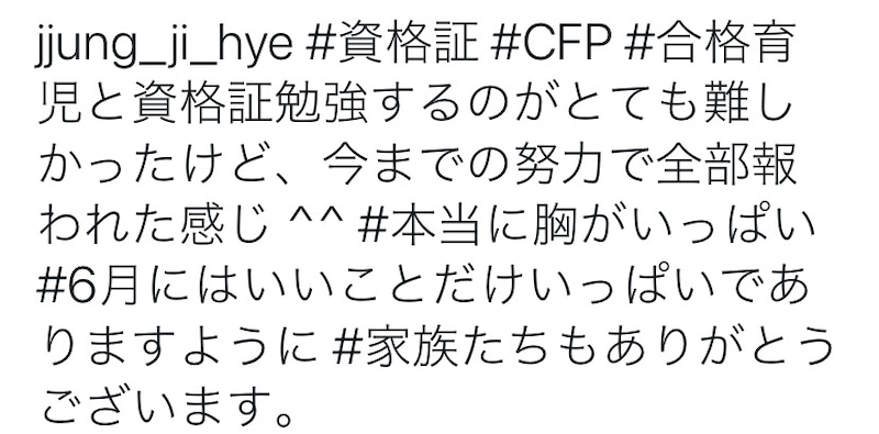 ジヘちゃんは結婚前は銀行に勤務してたのでとても難しい資格に挑戦したんですね~