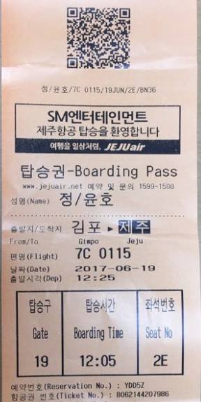 6/19SMエンターテインメントのワークショップの時のユノの航空券