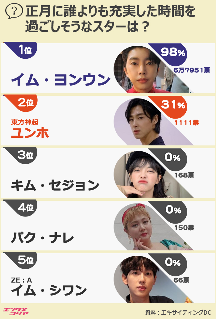 東方神起ユンホが正月に充実した時間を過ごしそうなスター2位、1位は?