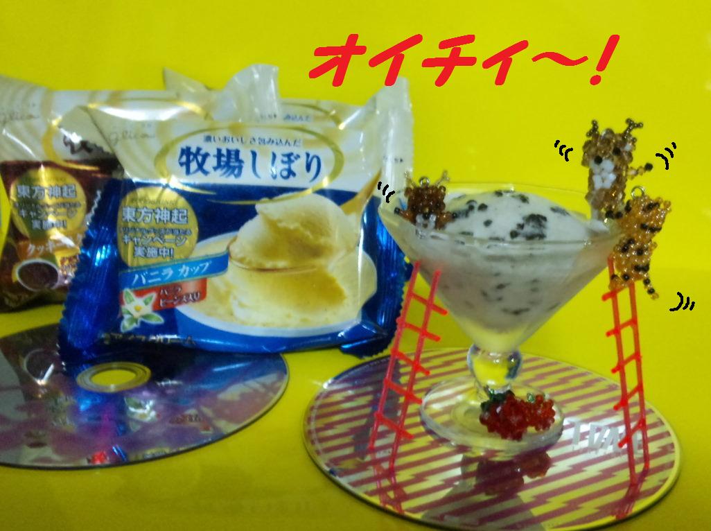 '牧場しぼり' を味わうユノタイガー&チャミ鹿&ベィビーチャミ鹿でした!バニラ濃厚で美味しかった!クッキー&クリームは苦味ばしってこれもまた美味しい