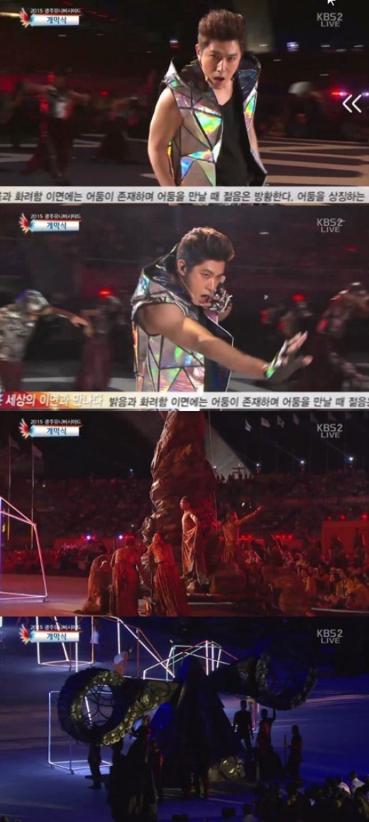 東方神起のユンホがミュージカル出演をした「2015光州(クァンジュ)夏季ユニバーシアード」のオープニングセレモニーの映像がユーチューブを通して公開された。
