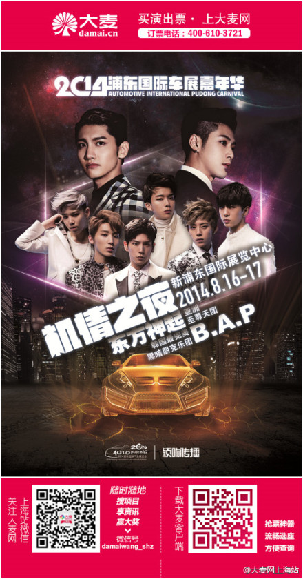これはアジアの規模の最大の自動車と音楽の饗宴、史上かつてない国境を越え、珍しい組み合わせが爆発この夏には、高騰の波「感情」をリリース。東方神起、B.A.P、MCHOTDOG、キノコの団、頂ビルサーカス団などの大ka8.16―8.17は上海国際展覧センターに現れてあなたとと一緒に滞りがなく享受します