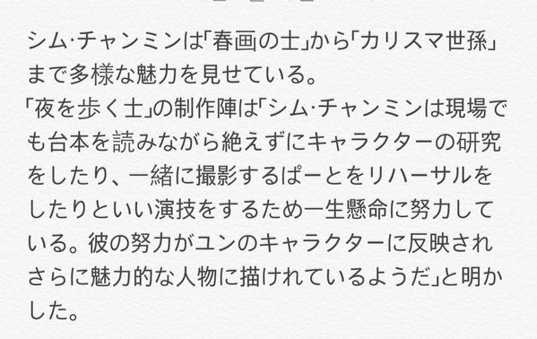 「夜を歩く士」側、「シム・チャンミンの努力がキャラクターに反映されもっと魅力的」