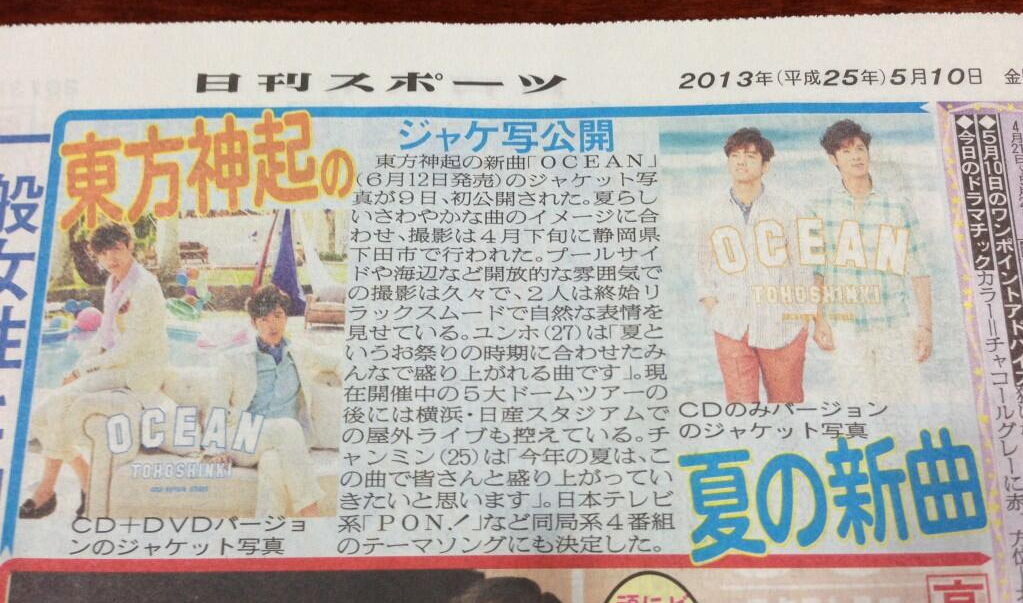 東方神起、新曲が日テレ4番組同時テーマ曲に韓国の男性グループ「東方神起」が6月12日に発売するニューシングル「OCEAN」が、日本テレビ系のバラエティー4番組のテーマ曲に決定した。