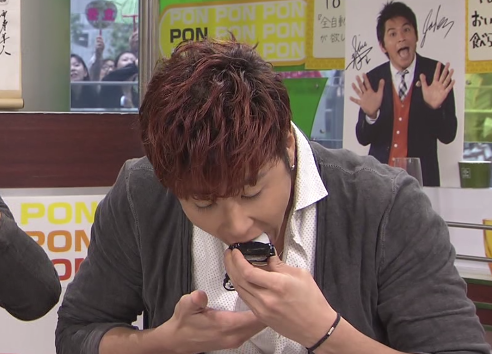 チャンミンは大口でパクリ・・・ワイルドだぜぇ~と見つめるユノ