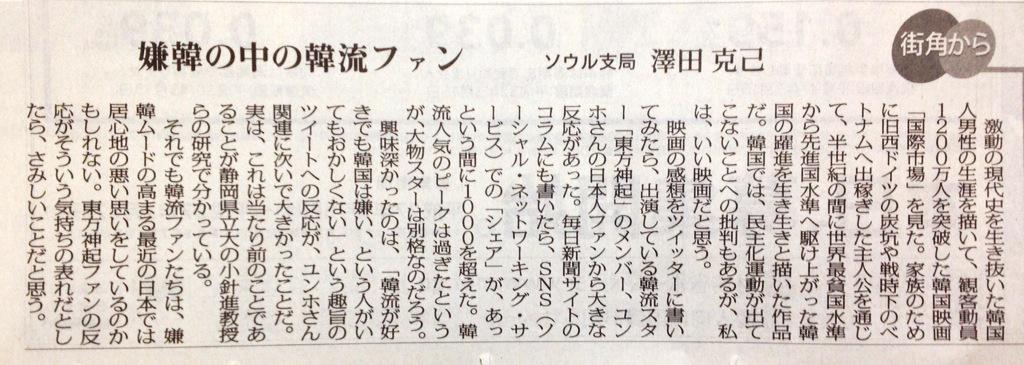 澤田克己さんの「嫌韓の中の韓流ファン」国際市場とトンペンについて掲載されています。