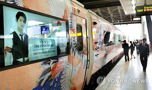 KTX開通10周年記念'東方神起列車'が24日午前ソウル駅で出発を待っている。 この列車には東方神起が共に搭乗してファンたちと共に特別な一日を送る予定だ。