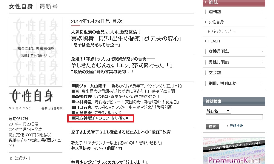 emoji1/28号女性自身・・・チャンミン(甘い香り)1月14日発売