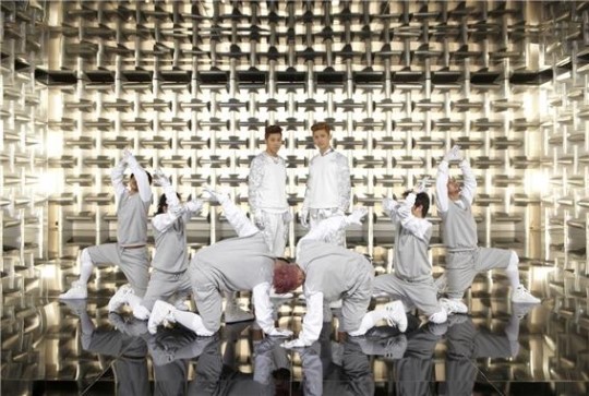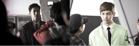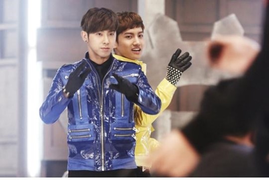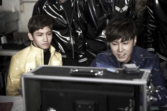 こんにちは!東方神起のユノ·ユンホ、チェガン·チャンミンです。今回お見せする写真は"ヒューマノイド"のミュージックビデオ撮影現場です。 "ヒューマノイド(Humanoids) "も"キャッチ米(Catch Me) "と同じくらいのパフォーマンスが強烈ですよ。ので、ミュージックビデオにも追加ために撮影前に二人の動作も合わせてカメラ動線も確認しながら熱心にチェックしています。そういえば前それなりに深刻な顔なのに、チャンミンは私よりいっそう余裕の表情ですね。ハハ。表情は異なりますが、目つきだけは私たちの両方を真剣でしょう?^ ^