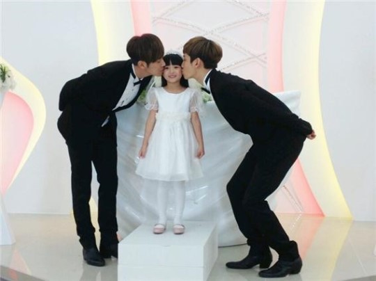 あ〜この写真は子供のレディーに私達がキスをしている写真ですが。会場いらっしゃった方は、どのような場面だったのかご存知でしょう?^ ^ チャンミンはボールに自然にするために、私はヌンヨプに加え、キスをしてくれますね。最大限自然に撮影しようとしたがNG!きれいで天使のような子供のレディーと一緒の撮影なので大変難しいこと分からないんですよ。^ ^ 明るく元気に育って簾!