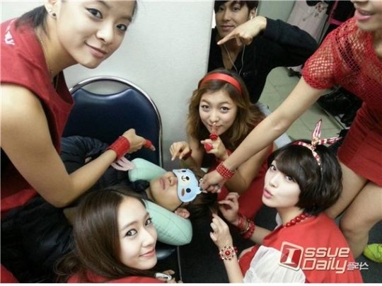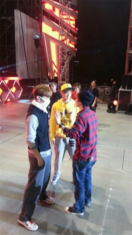 私たち控室の前を通りかかったf(x)の弟たち! 眠ったチャンミンが割れないように静かに入ってきまし! みんなで記念ショット! チャンミンはどんな状況なのかもしれないまだ夢の世界で迷っていますね! この写真を見ればどんな反応を見せるすでに気になりますね^ ^