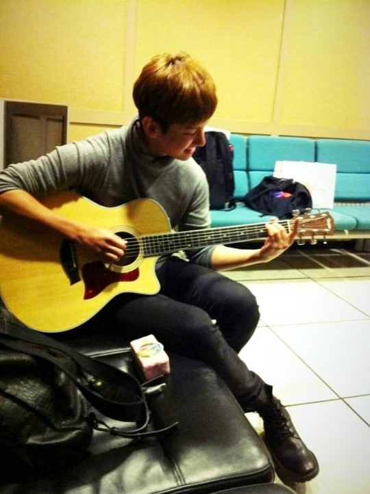 ドドング〜この写真に申し上げますと、控室でギター練習三昧に陥った自分の姿です。まだ足りない演奏の実力だが熱心に練習して、後で機会があれば皆さんにも聞かせます。まだ照れくさい笑いも私の実力だ!ファンの方々に、常に新しい姿をお見せしようでは東方神起の努力を忘れないでください。