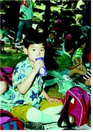 こんにちは、ユノ·ユンホです。写真の中の子供が誰なのか一度調べて見ました。まさに私の幼い頃の写真です。この写真は幼稚園の時遠足に行ってご飯食べている写真なのに、口の中にいっぱい食べ物を入れて飲み物を飲む姿が可愛いです。(笑)個人的には白のストッキングが本当に色違いますね。
