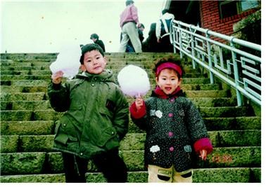 今回の写真は、家族同士の旅 行行って撮った写真ですが。どこかの階段で妹と仲良く綿菓子を持って撮った記念写真です。はにかむようにカメラを見ている妹とは違って、前素敵ポーズ!(笑)今見たら笑いが自然に出ますね^ ^