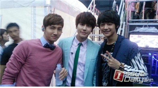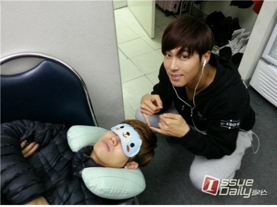 私たち控室の前を通りかかったf(x)の弟たち! 眠ったチャンミンが割れないように静かに入ってきまし! みんなで記念ショット! チャンミンはどんな状況なのかもしれないまだ夢の世界で迷っていますね! この写真を見ればどんな反応を見せるすでに気になりますね^ ^