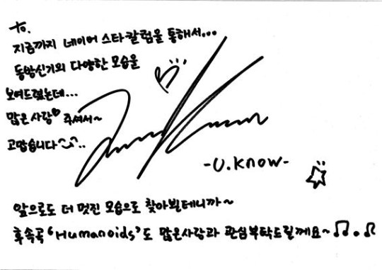 と! 東方神起として舞台に上がる時間です。 この写真はスターコラムの最後を飾るようです!5回に渡って連載された東方神起スターのコラムよく見ました。 普段公開していなかった多様な姿を公開することができ、私たちも楽しい時間だったようです。 私たちは、新曲" Humanoids "と熱心に活動しているんです! 今後もより一層発展する姿、 親しい姿たくさんお見せします! 東方神起さらにたくさん愛して下さい〜〜 ありがとうございます!