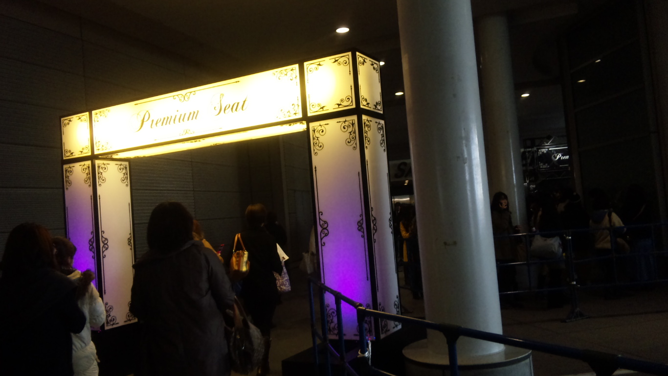 ・前日ぴあ販売でゲットした見切れ体感席。330扉3列132番席。入場時は、途中からカーペット張りの通路になって、ドキドキ。関係者席だったのかな?案内されたところはかなり手元が暗くて、正直ステージとの距離に愕然とした。(。・・)