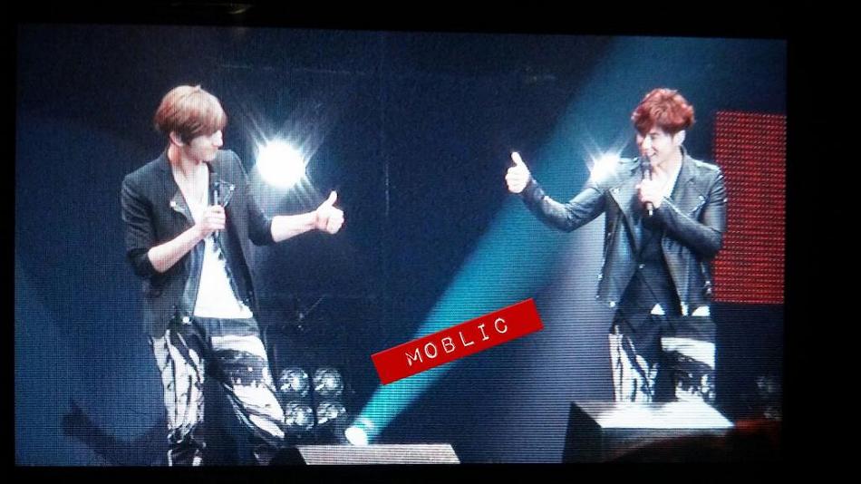 ・ユノ、時間かけてセグウェイで客席抜けてるとき、多分両サイドのビギさんたちにハイタッチしながら進んでた! 後でステージ上がってから、セグウェイの器具がおかしくてバックしたりしてゆっくりになったーとかいっぱい言ってたら ミンが『優しいですねー』ってユノにグーサイン☆