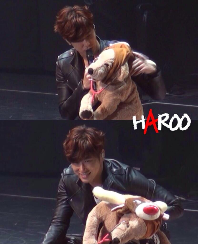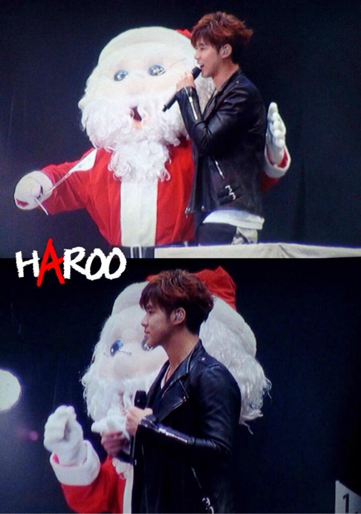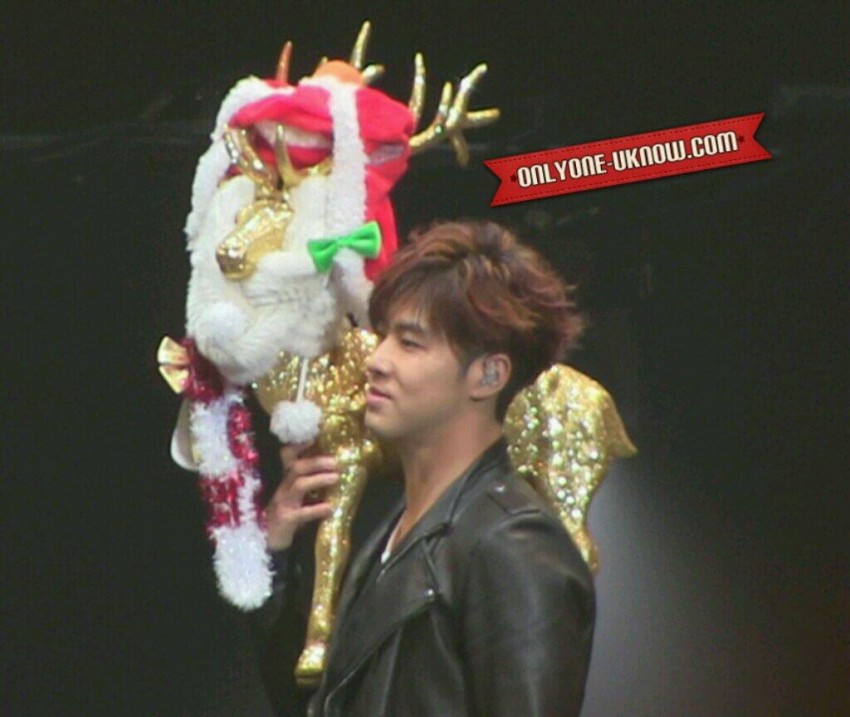 ・ユノはそのトナカイがお気に入り過ぎて抱いたりあやしたり上にまたがったりしてたら衣装の革ジャンが金の粉まみれになってたwww肩にまで担いで(神輿みたいに)たから、顔にも金の粉がいっぱい付いてたwww