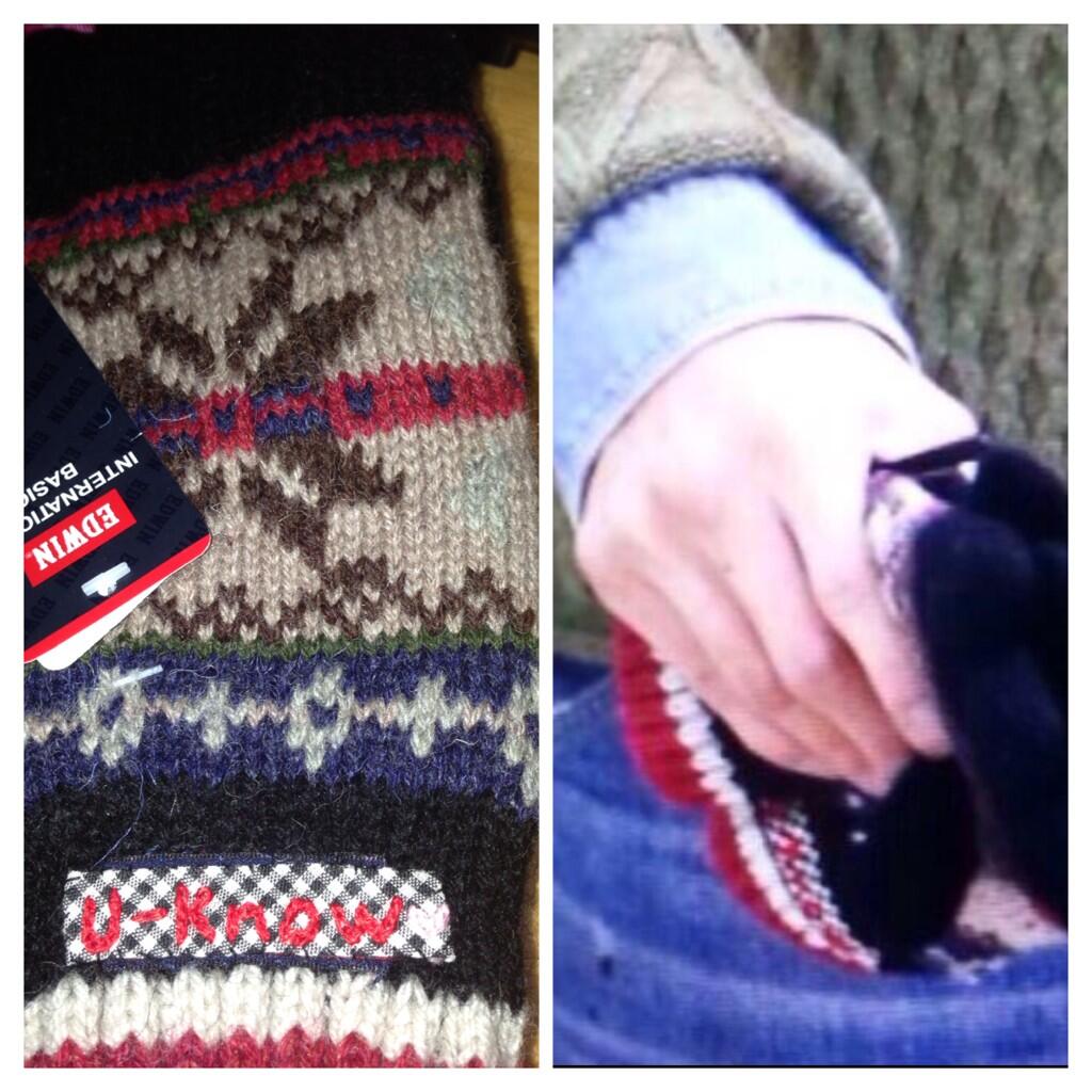ユノ→薄いグレーのざっくりニット袖なし。その下は同色のピッタリヒートテックみたいなので二の腕のモリモリ感が露にw