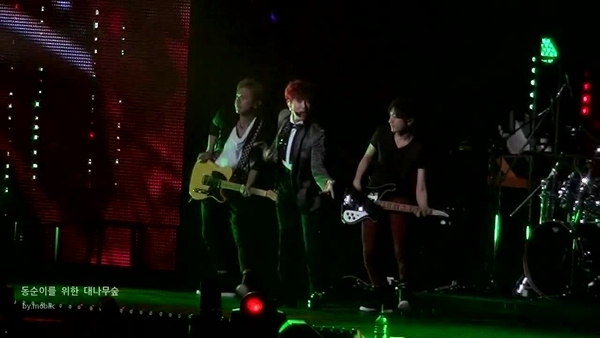 "TIME"ツアーでユノのソロの時左側の人がコンちゃん右はカズさん