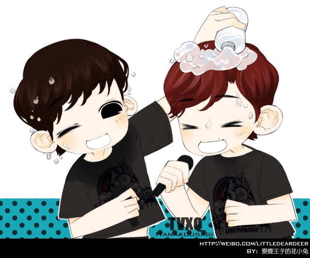 ・アンコールのMCでユノが感動的なコメントをしてる後ろで、着替えて出てきたチャンミンが、しゃがんで水飲む→タオルに水含ませて顔や首をトントン上から押さえるように拭く→まだMCが終わらないので水を手にとって顔や首にパタパタ付ける。乙女チャミを見た。