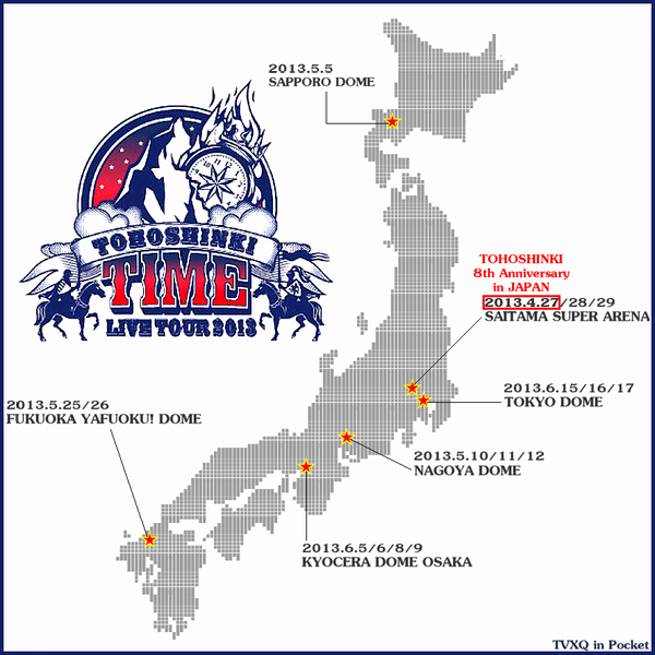 [加工画:MAP] "东方神起LIVE TOUR 2013〜TIME〜"※追加公演日とロゴを入れました