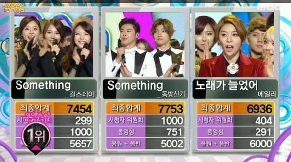この日1位の競争の端に東方神起が 'Something(ソムシン)」で1位を獲得した。ユンホ(ユノ)は「社長と先輩·後輩歌手の皆さんに感謝である。'音楽中心のスタッフの皆様にも感謝し、何よりもこの賞は、カシオペアのためのものである。以上は皆さんだ」と伝えた。