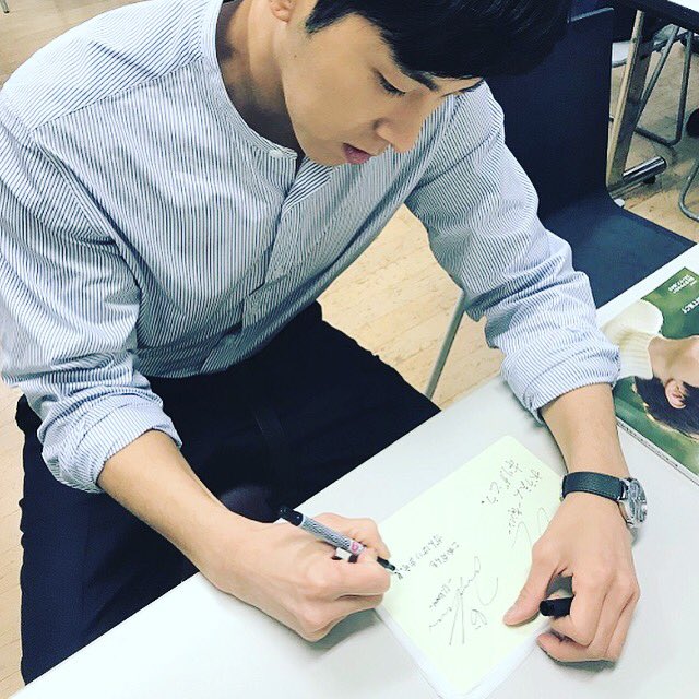 ・この人今ごろ結婚してますよ!(笑)」、ユンホさんも「ボク、財閥じゃないですから!」と息の合った総ツッコミが飛んできて、爆笑でした。写真は1月号読者プレゼントの直筆メッセージカードを書いているユンホさん→