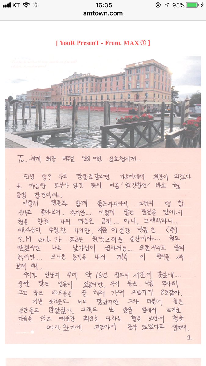 公式HPにユンホとチャンミンが互いに宛てた手紙